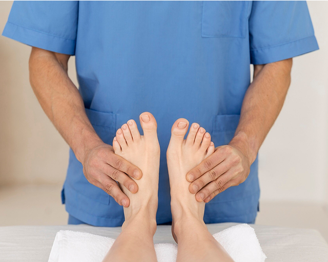 Tratamiento específico y cuidado del pie basado en corte y fresado de uñas, eliminación de durezas y callosidades, exfoliación e hidratación de la piel.